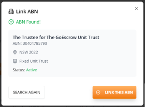 To Link an ABN, click “Link ABN”. The following pop-up window will appear.