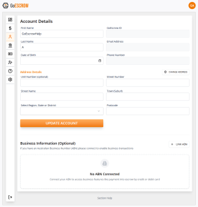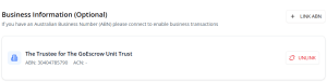 To enable extended functionality for Australian Businesses, an ABN (Australian Business Number) must be linked.