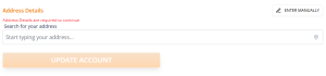 Select the correct listed address to pre-fill fields, and then click “Update Account” to save changes.