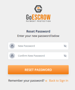 Users will then be redirected to the original Sign In page and may use their new password to access GoEscrow Services.