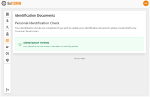 When the users’ document has been correctly verified, a confirmation message will display as above.